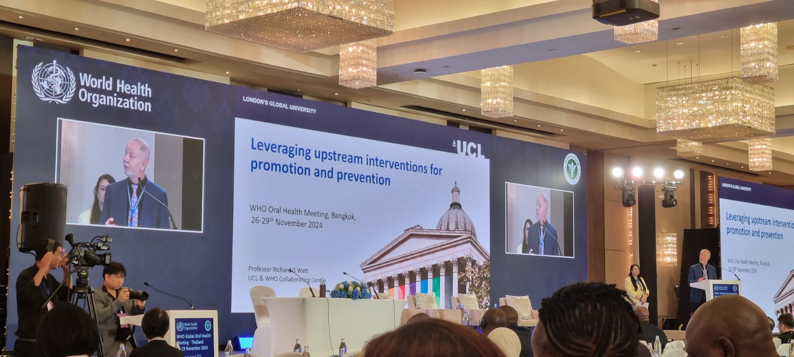 Professor Richard Watt (University College London) and Professor Manu Mathur (Queen Mary University of London/Public Health Foundation of India) both recently delivered keynote addresses at the first ever WHO global oral health meeting held in Bangkok, Thailand. Participants from over 100 countries including 12 health ministers, and representatives from 35 UN Agencies and non-State actors gathered to share experiences of implementing policies to support the WHO Global Oral Health Action Plan and coordinate input into the forthcoming 4th UN High Level Meeting on NCDs in 2025.